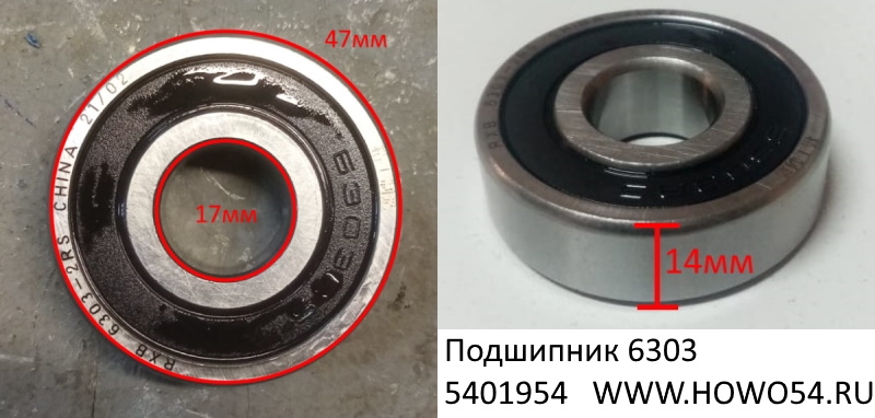 —Подшипник шестерни привода маслонасоса 6303-2RZ 90003311410 (01954)